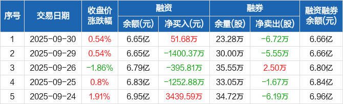 晶科科技:融资净买入51.68万元,融资余额6.65亿元(09-30)