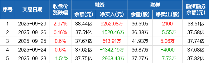 光大证券:融资净买入9252.08万元,融资余额38.44亿元(09-29)