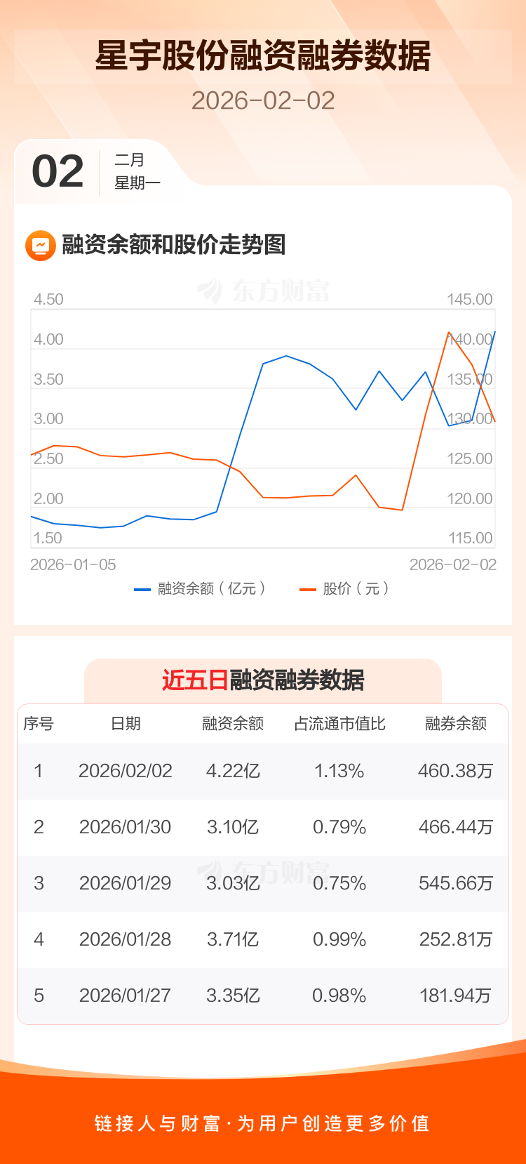 交易所最新数据显示,星宇股份于2026年2月2日获融资买入1.49亿元,融资偿还3771.80万元,当日融资净买入1.12亿元。目前,该股融资余额4.22亿,占流通市值比例为1.13%。