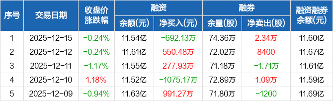 中国交建:融资净偿还692.13万元,融资余额11.54亿元(12-15)