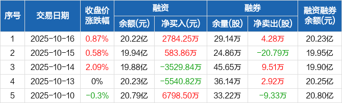 光大银行:融资净买入2784.25万元,融资余额20.22亿元(10-16)