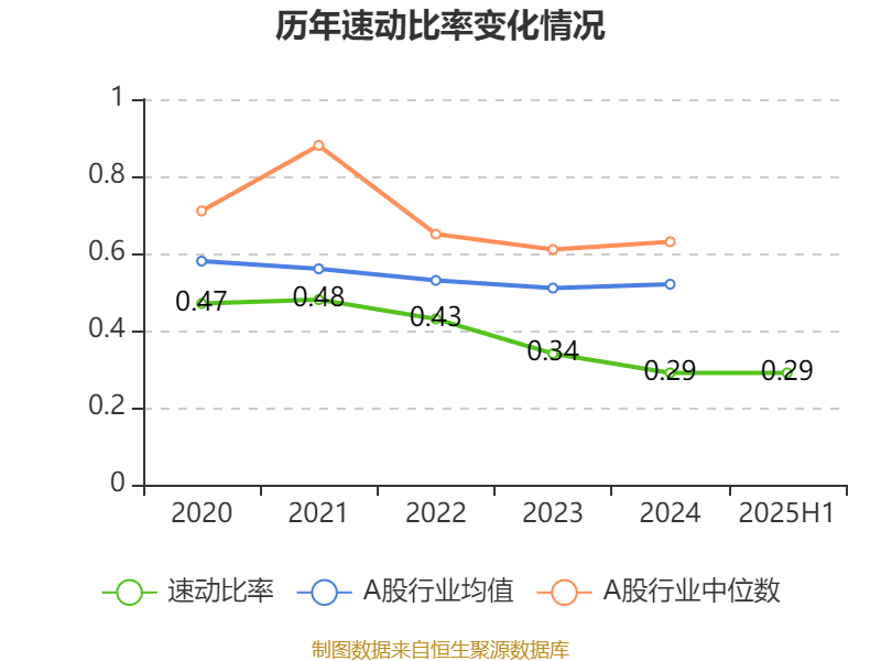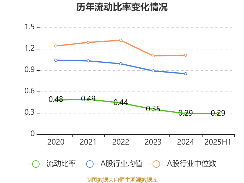 2025年上半年,公司流动比率为0.29,速动比率为0.29。
