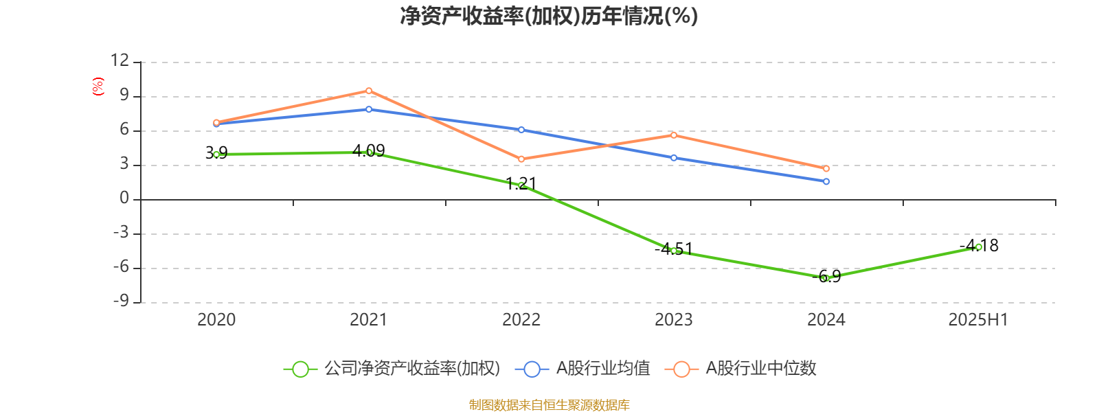 2025年上半年,公司平均净资产收益率为-4.18%,较上年同期下降1.57个百分点。