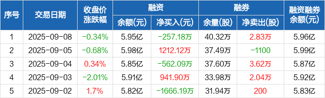 紫金银行:融资净偿还257.18万元,融资余额5.95亿元(09-08)