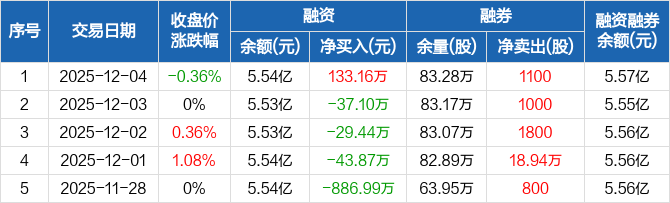 紫金银行:融资净买入133.16万元,融资余额5.54亿元(12-04)