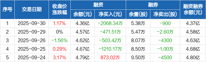 福莱特:连续4日融资净偿还累计4253.44万元(09-30)
