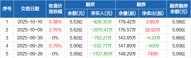 中远海发:连续5日融资净偿还累计5246.62万元(10-10)