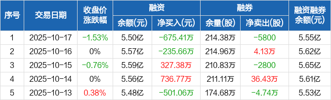 中远海发:融资净偿还675.41万元,融资余额5.5亿元(10-17)