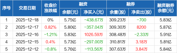 中远海发:融资净偿还438.67万元,融资余额5.75亿元(12-18)