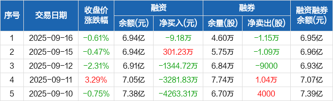 正泰电器:融资净偿还9.18万元,融资余额6.94亿元(09-16)