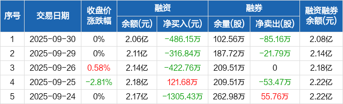 辽港股份:融资余额2.06亿元,创近一年新低(09-30)