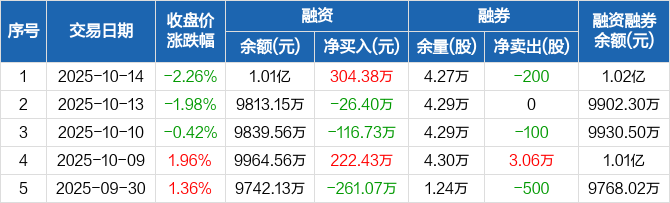 海天精工:融资净买入304.38万元,融资余额1.01亿元(10-14)