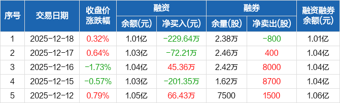 海天精工:融资净偿还229.64万元,融资余额1.01亿元(12-18)