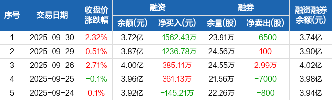 亚星锚链:融资净偿还1562.43万元,融资余额3.72亿元(09-30)