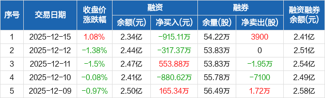 中煤能源:融资净偿还915.11万元,融资余额2.34亿元(12-15)