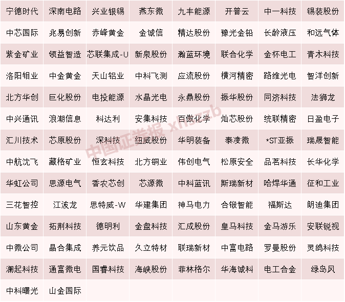 总市值方面,上述创新高的股票中,A股总市值超千亿元的个股有20只。总市值居前的有宁德时代、中芯国际、紫金矿业、洛阳钼业、北方华创,分别为17427.82亿元、10236.09亿元、8204.50亿元、3577.13亿元、3170.78亿元。