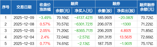 紫金矿业:连续5日融资净偿还累计6.58亿元(12-09)