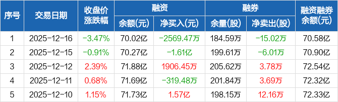 紫金矿业:融资净偿还2569.47万元,融资余额70.02亿元(12-16)