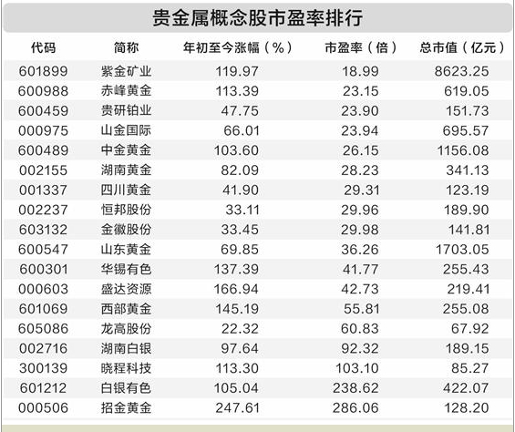 贵金属价格一路上涨 紫金矿业等9只概念股估值低于30倍