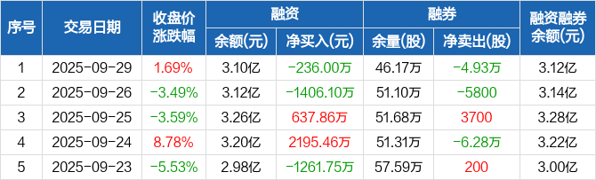 京运通:融资净偿还236万元,融资余额3.1亿元(09-29)