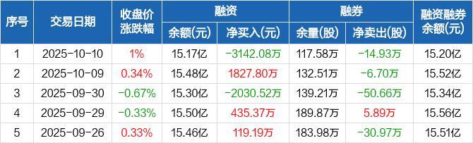 浙商银行:融资净偿还3142.08万元,融资余额15.17亿元(10-10)