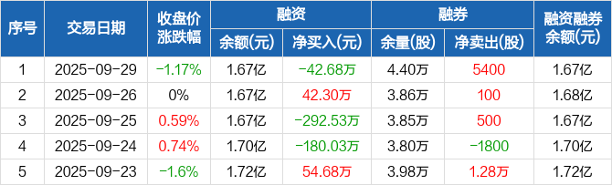 中国出版:融资净偿还42.68万元,融资余额1.67亿元(09-29)