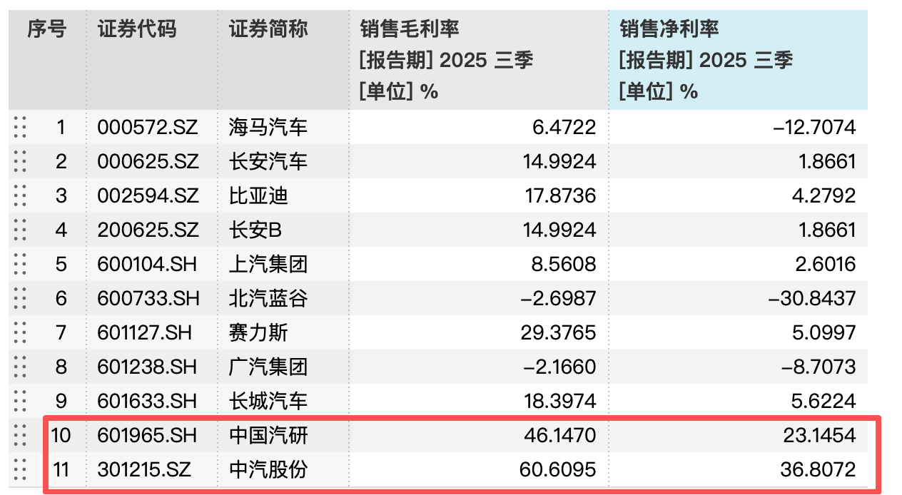 Wind数据显示,去年前三季度,中国汽研和中汽股份销售净利率分别为23.1%和36.8%。而根据乘联分会最新数据,2025年,汽车行业销售利润率4.1%,处于历史低位。