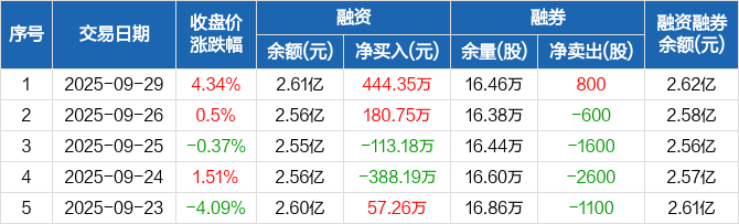 海南矿业:融资净买入444.35万元,融资余额2.61亿元(09-29)