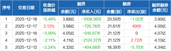 海南矿业:连续5日融资净偿还累计4875.79万元(12-18)