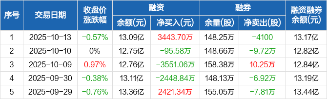 中国银行:融资净买入3443.7万元,融资余额13.09亿元(10-13)