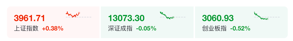 截至午间收盘,沪指涨0.38%,深证成指跌0.05%,创业板指跌0.52%。