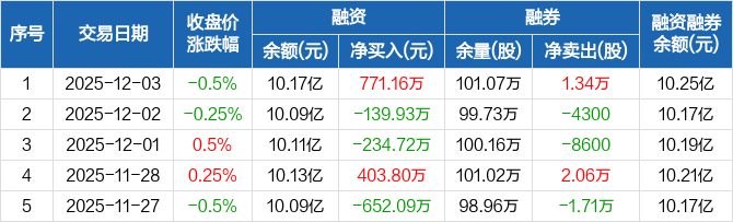 南京证券:融资净买入771.16万元,融资余额10.17亿元(12-03)
