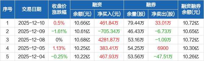 南京证券:融资净买入461.84万元,融资余额10.66亿元(12-10)