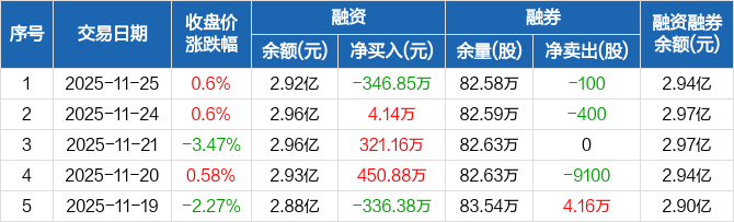 金隅集团:融资净偿还346.85万元,融资余额2.92亿元(11-25)