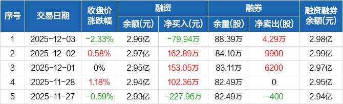 金隅集团:融资净偿还79.94万元,融资余额2.96亿元(12-03)