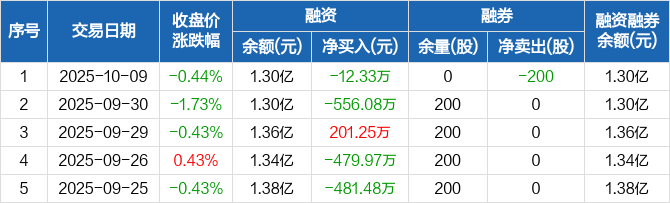 丰林集团:融资净偿还12.33万元,融资余额1.3亿元(10-09)