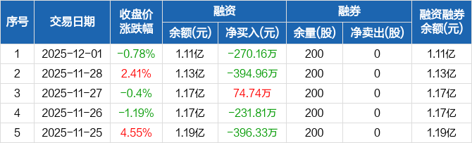 丰林集团:融资余额1.11亿元,创近一年新低(12-01)
