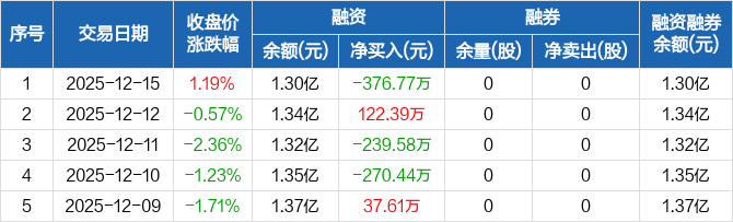 鼎龙科技:融资净偿还376.77万元,融资余额1.3亿元(12-15)