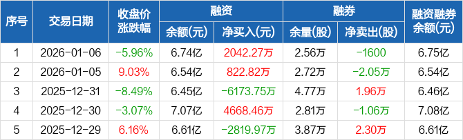 喜临门:融资净买入2042.27万元,融资余额6.74亿元(01-06)