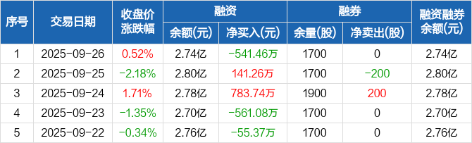 创力集团:融资净偿还541.46万元,融资余额2.74亿元(09-26)