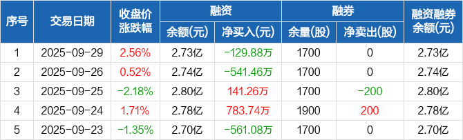 创力集团:融资净偿还129.88万元,融资余额2.73亿元(09-29)