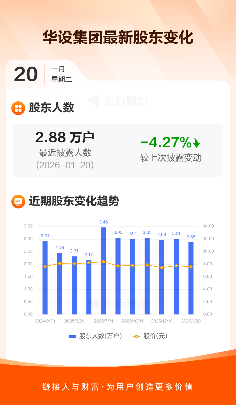 华设集团:截至1月20日最新股东户数2.88万户,较上期减少4.27%