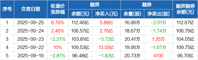 中科曙光:融资余额112.46亿元,创历史新高(09-25)