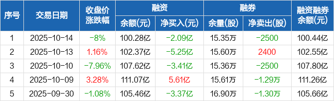 中科曙光:融资净偿还2.09亿元,两市排名第12(10-14)