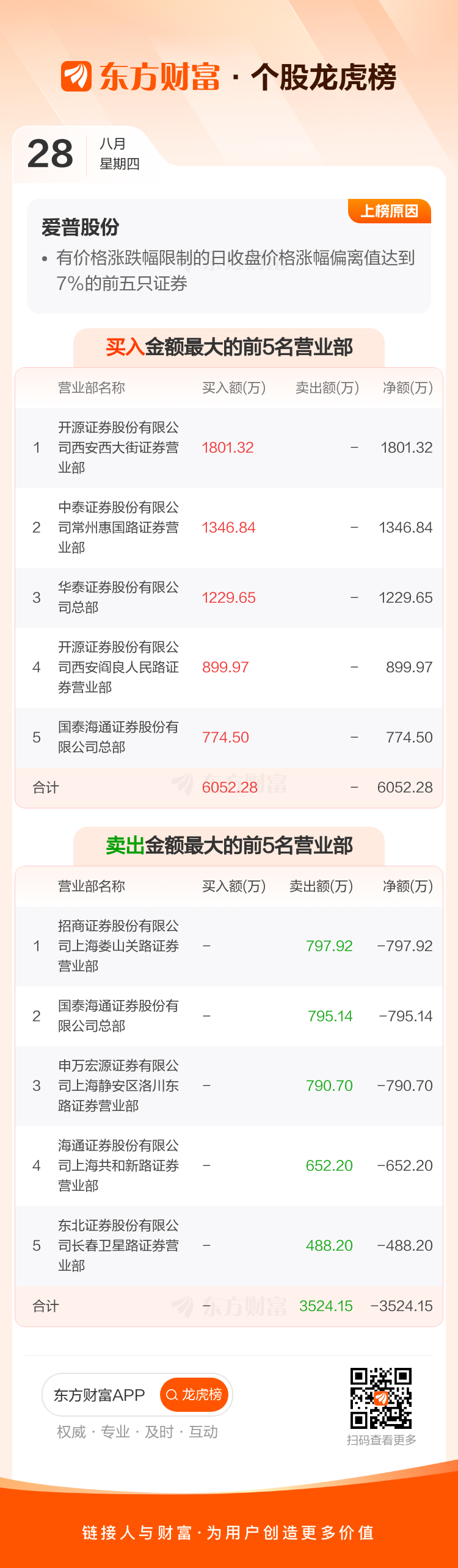 爱普股份(603020)龙虎榜数据(08-28)