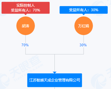 公告显示,智越天成是玖星精密的控股股东,持股比例为46.1165%。天眼查显示,智越天成的股东分别是胡涛、万红娟,持股比例分别为70%、30%。