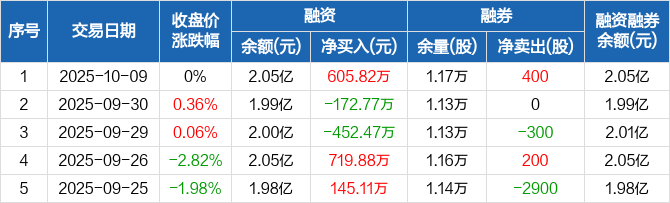 大豪科技:融资净买入605.82万元,融资余额2.05亿元(10-09)