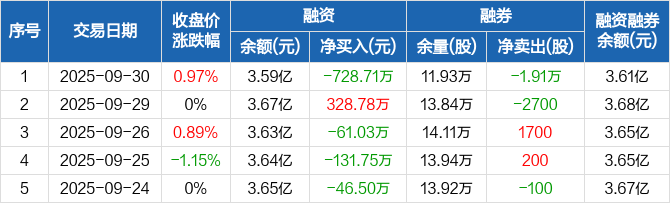 千禾味业:融资净偿还728.71万元,融资余额3.59亿元(09-30)