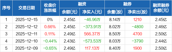 千禾味业:融资净偿还46.96万元,融资余额2.45亿元(12-15)