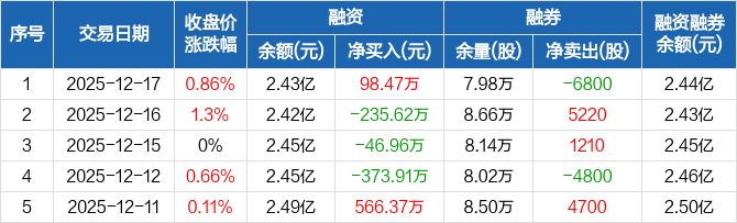 千禾味业:融资净买入98.47万元,融资余额2.43亿元(12-17)